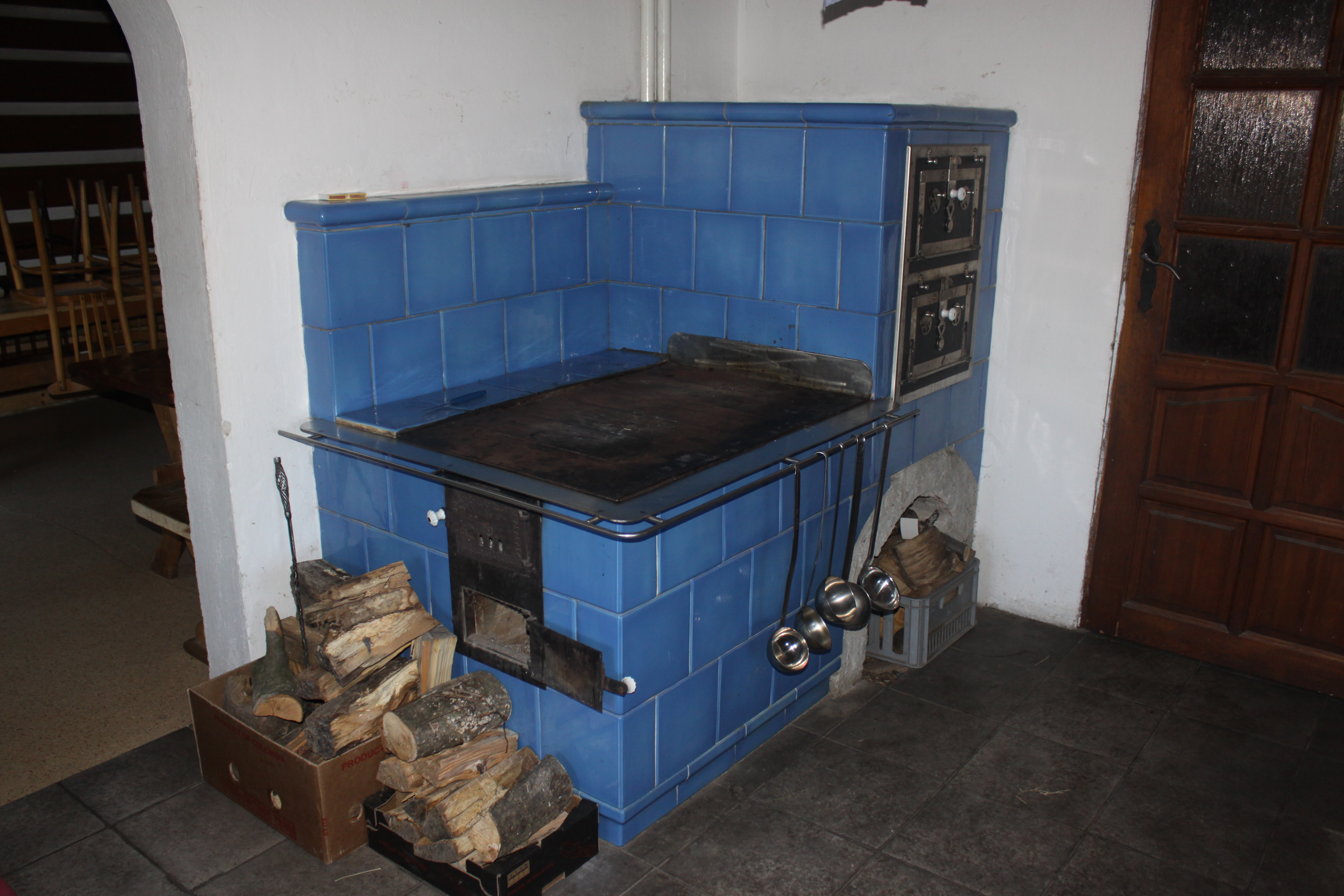 - v přízemí selská kuchyň, prostorná izba s krbem vhodná jako jídelna či společenská místnost, 3x WC, 2x sprchy